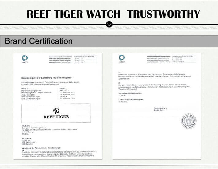 Cùng hạng với Reef Tiger có những cái tên khác như Apple (USA), Bulova (origins: USA) (Japan) (CITIZEN Group). Chứng tỏ, cái tên Reef Tiger tỏ ra không kém cạnh với nhiều thương hiệu danh tiếng trên thế giới.